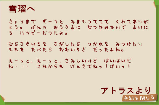 アトラスくんがお手紙をくれました。